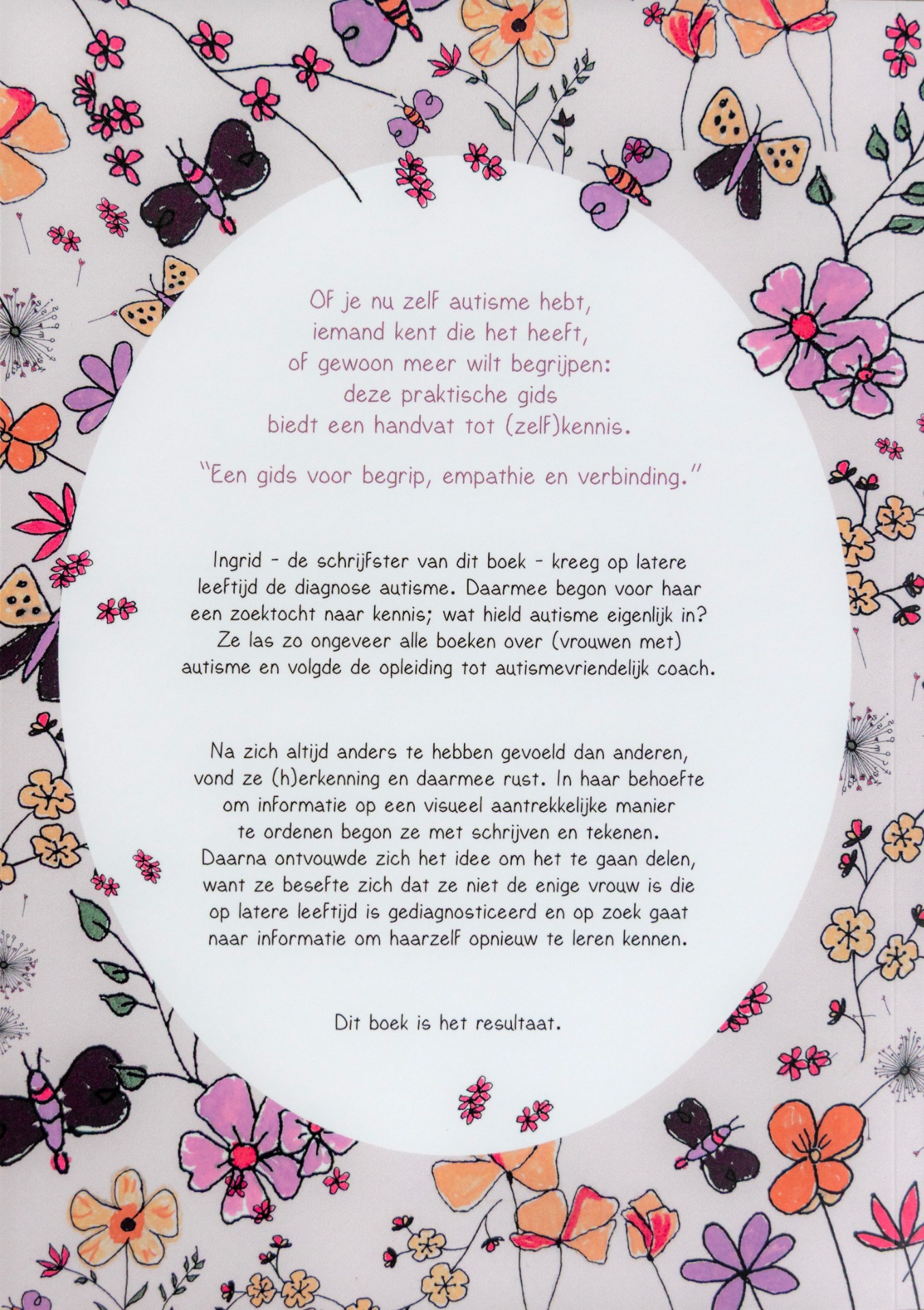 Ingrid - de schrijfster van dit boek - kreeg op latere leeftijd de diagnose autisme. Daarmee begon voor haar een zoektocht naar kennis; wat hield autisme eigenlijk in? Ze las zo ongeveer alle boeken over (vrouwen met) autisme en volgde de opleiding tot autismevriendelijk coach.